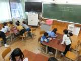 12月6日に、1年1組で研究授業を行いました。 1年生、たくさんの教職員が見る中...
