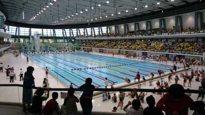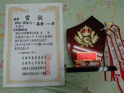 大きな会場とたくさんの人に,子どもたちは緊張気味でしたが,力を出し切って泳ぎ切ることができました。女子200m混合リレーでは,見事3位に入りました。おめでとう!よく頑張りました。