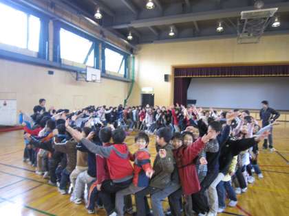 最初は,緊張していたようですが,ゲームが進むうちに自然と高倉小学校の子どもと,御所南小学校の子どもとが隣同士になって楽しそうに活動していました。交流会後の子ども達からは,「すごく楽しかった。」「友達ができた」や「4月にまた会うのが楽しみ」という感想を聞くことができました。