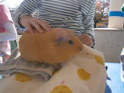 11月7日(水)に京都市動物園へふれあい体験をしに行きました。てんじくねずみをひざの上にのせ,優しくなでていました。「あったかいね。」「ふわふわしているね。」「心臓がどくどくしているよ。」と,それぞれ発見があったようです。その後うさぎを触ると,「てんじくねずみよりも,やわらかい!」「毛が長い!」と,違いにも気付いていました。