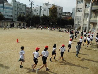 12月3日(月)の持久走大会に向けて,中間休みの時間を利用して「中間マラソン」が始まりました。