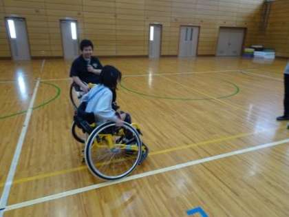 車いすで生活する上で大変なことや困ることを聞き,自分たちがどのようなことに気を付ければいいのか,困っておられるときにどんな声をかけたらいいのかなど,考えることができました。また,車いすでできるスポーツがたくさんあることも教えていただき,車いすバスケットのプレイも実際に見せていただきました。