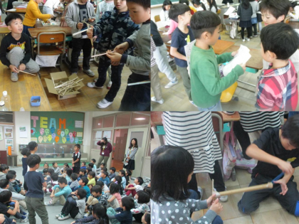 おもちゃを動かすコツや工夫したところなどを1年生に話したり,手をそえておもちゃの持ち方を教えたり,成功すると拍手をしたりと,終始,和やかな雰囲気でした。