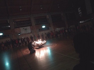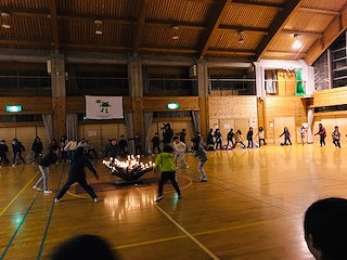 炎をキャンドルに灯し、キャンドルファイヤーがスタートしました。「我は大蛇」や「山の家に行こうよ」などのゲームをしました。ダンスもし,笑顔のたえない時間となりました。