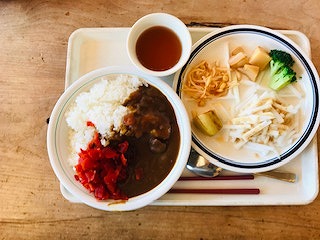 昼食の主食はカレーかラーメンのどちらかを選びます。どちらも大人気でした。バイキングの中にメンチカツがあり,人気の食べ物でした。最後のお昼ご飯も美味しくいただきました。