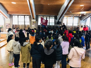 ついに退所式です。2泊3日の花背山の家ともお別れです。三日間を思い出し花背山の家に別れを告げます。