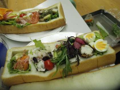 また,食パンをお弁当箱に見立て,色とりどりのおかずを詰めた「エコパン弁当」も紹介して頂き,子どもたちはとても喜んでいました。「食べきる」ことの大切さも考えることができ,とても楽しく有意義な学習になったようでした。