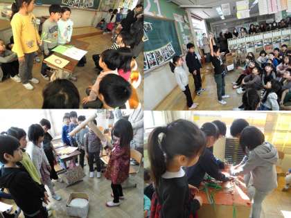 2月5日(火)に,1年生を招待して「お米フェスティバル」を開きました。2年生でがんばってきたお米作りを,「どうやったら上手く伝えられるかな。」「楽しんでもらえるかな。」と考えながら,一生懸命,準備を進めてきました。