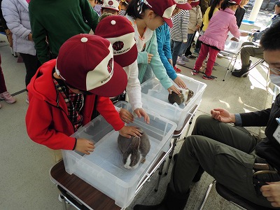 生活科「いきものとなかよし」では,ウサギとテンジクネズミとふれあいました。背中を優しくさすりながら,子どもたちは,「ふわふわしている。」「気持ちがいい。」と生き物の温かさや柔らかさを肌で感じていました。