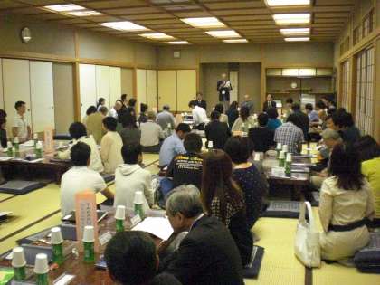 その後,19時15分より推進委員会をランチルームにて行いました。113名のスマイル委員の方々を迎え,全体会を開きました。