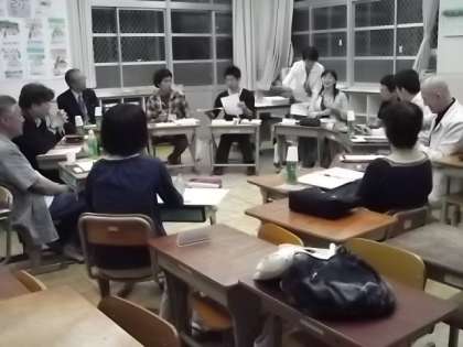 当初の予定より30分繰り上げて,18時より理事会をもちました。昨年度の取組を説明し,今年度の方向性について提案し,承認していただきました。