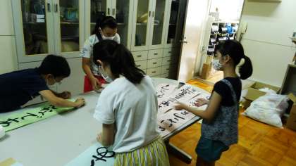 先日の委員会で,みんなでアイデアを出し合いました。その中で出た取組の1つ「たすきをつけてあいさつ運動をしよう。」ということが決まりました。休み時間にも,集まってたすき作りをしていました。