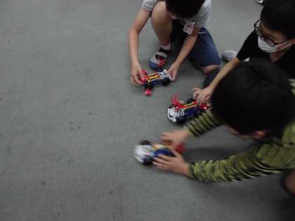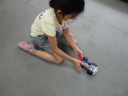 自分たちで作った車を友達と一緒に走らせることができ,子どもたちはとても喜んでいました。