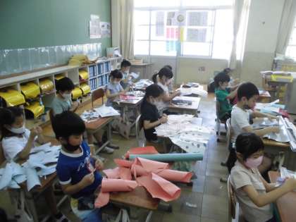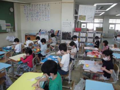 図画工作の学習では,紙をやぶいて楽しく活動しました。