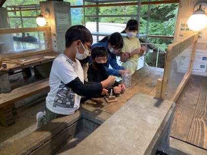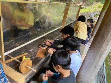 火おこしの準備が始まりました。みんなで黙々と頑張ってます。