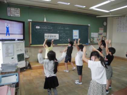 音楽に合わせて体を大きく楽しく動かし,だんだん上手に踊れるようになってきました。体育の学習だけではなく,教室でも動画に合わせてダンスを練習しています。