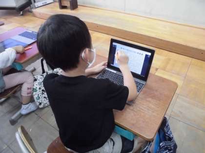 1年生は,タブレットを使った学習を進め,だんだん使い方に慣れてきました。ロイロノートスクールを使い,自己紹介のノートを作ったり,作ったノートを提出したリする練習もしました。先日は,GIGA支援チームの先生方も子どもたちの学習のお手伝いに来てくださいました。