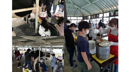 6年生修学旅行その6 「乳しぼり体験3・昼食」