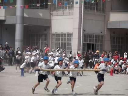 3年生は団体競技「台風の目」,4年生は団体演技「よさこい鳴子踊り よっちょれ」に取り組みました。