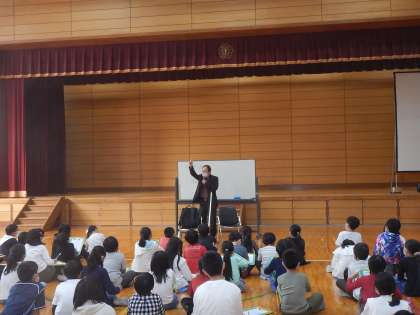 本日,たかくら学習のゲストティーチャーとして松永さんに来ていただきました。松永さんは40歳の時に視力を失われたそうです。普段どのように生活をしていて,どのようなことを感じているか,たくさん具体例を挙げて教えていただきました。