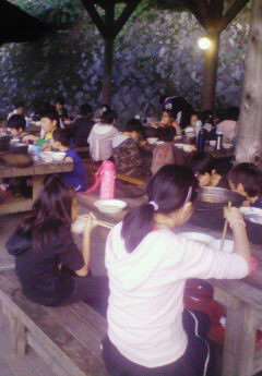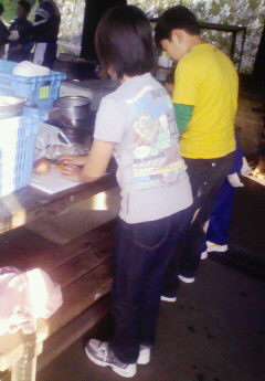 今日の夕食は,野外炊事で作る「鶏すき」です。