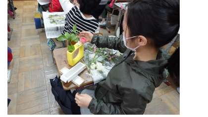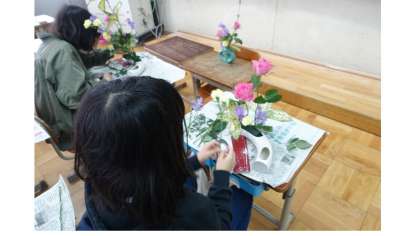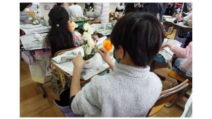 卒業式を前日にした今日,5年生は生け花体験を行いました。6年生の卒業をお祝いする気持ちで生け花をおこないました。