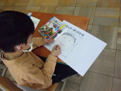 さらに昨日は,自分の顔を描いて,今日は,自分の好きなものや好きなことを描きました。好きなもの・ことがいっぱいで