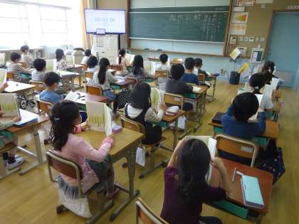 国語科「ふきのとう」です。音読をしました。1年生のときに学んだ読む姿勢がしっかりできています。