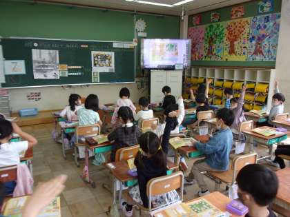 ばらばらに置いてある「じょうろ」と「ばけつ」を数図ブロックに置き換えて,一列に並べて調べると比べやすい!!分かりやすい!!と数図ブロックの便利さに気づきました。子どもたちは,「また明日も数図ブロックを使ってお勉強したい。」と,数図ブロックを気に入った様子でした。