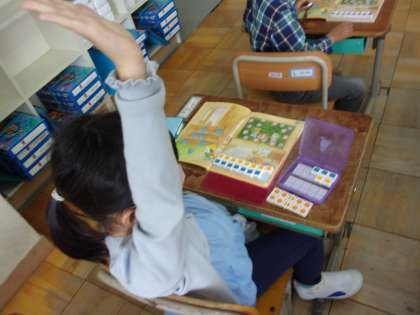 算数の学習で数図ブロックをつかって,どちらが多いかを考えました。