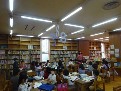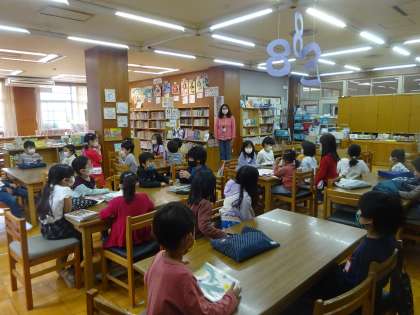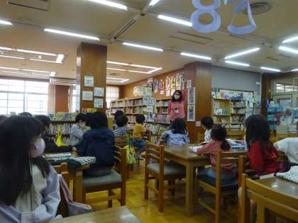 司書の先生から,図書室の使い方について教えていただきました。本が大好きなみんなは,一生懸命司書の先生のお話を聞いていました。