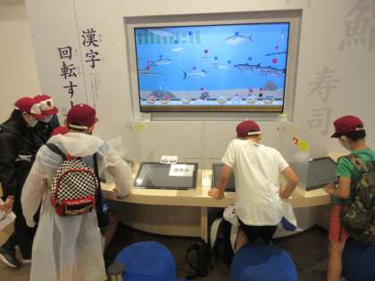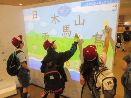 お弁当を食べた後は漢字ミュージアムに向かいました。タッチパネルをさわって漢字を作ったり,昔の漢字を使って自分の名前のスタンプが押せるコーナーがあったり,子どもたちは夢中になって漢字の面白さや不思議さに浸っていました。