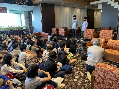 朝の集いです。集いの後は朝食です。最後の一日を楽しみにしているようです。