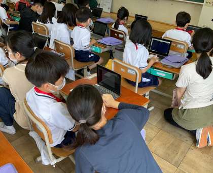 本日,1〜4時間目に御池校舎にいる6年生と高倉校舎の子どもたちを繋げるプロジェクト