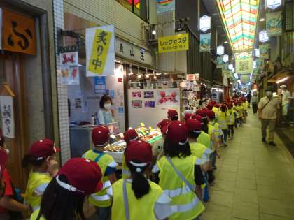 生活科の学習で,町たんけんに出かけました。「高倉小学校の校区には何があるのかな?」「商店街があるよ。」「錦市場もあるよ。」「お寺もあったよ。」など,自分たちが住んでいる町を見て回りました。この後も,町たんけんは続きます。「次は何が見つかるかな。」「楽しみだね。」新しい発見や,気付きを楽しみにする様子が印象的でした。