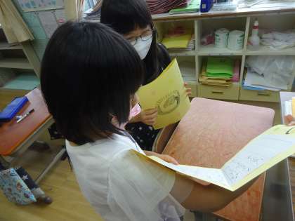 国語科「たんぽぽのちえ」で学習したことをもとに,〇〇のちえブックを作りました。今日は,完成したちえブックを紹介し合いました。「今まで知らなかったことが知れたよ。」「説明する文が上手に書いてあったね。」「もっと他の生き物や植物のちえも知りたいな。」など,学習のまとめでは,たくさんのふりかえりを聞くことができました。