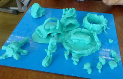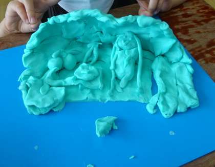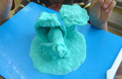 図画工作科「にぎにぎねん土」をしました。「ねん土をにぎると形が変わるよ。」「何に見えるかな。」「動物に見えてきたよ。」など,楽しみながら活動する姿が印象的でした。