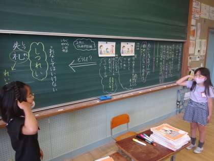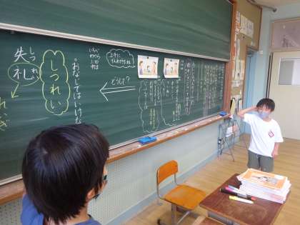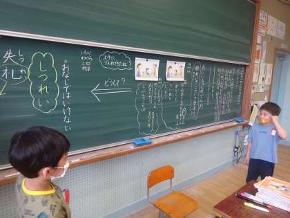 道徳科「おにいちゃんの電話」で,誰かに電話をかけるときの礼儀について,ロールプレイをしながら学習しました。