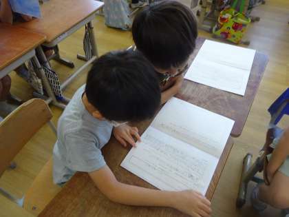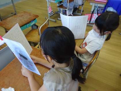 国語科「スイミー」の学習で、自分なりのスイミーをあらすじと共に紹介しました。「スイミーには、レオ=レオニさんからのメッセージが込められているよ。」「スイミーは勇気がある魚だと思うよ。」「仲間と一緒に力を合わせて頑張ったよ。」など、スイミーを読んだ感想を伝え合いました。