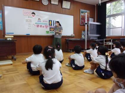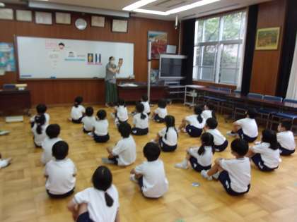 身体計測の前には、養護教諭の先生から「すいみん」についてお話してもらいました。眠りの時間は、身体の成長や脳の発達に影響することを教えてもらいました。睡眠のコツ「はやくねる」「ながくねる」を心がけて、「げんきだま」や「わかるだま」をいっぱいためて健康に過ごしましょうね。
