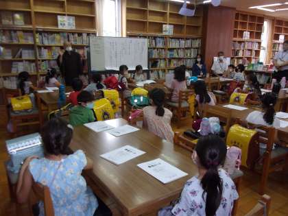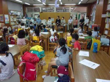 放課後まなび実行委員長の方や校長先生、放課後まなびスタッフの先生方のお話を聞いたり、放課後まなび教室参加カードの使い方を教わったりしました。背筋をピンと伸ばして、よい姿勢で話を聞くことができました。これからも、よい姿勢で集中して、宿題や自主学習に取り組んでもらいたいと思います。