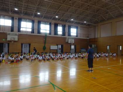運動交流会に向けて、今日は最後の練習でした。しかし、あいにくの空模様で、体育館での練習になりました。2クラスずつ、感染拡大防止対策に気を付けながらの練習になりましたが、細かな動きや表情、みんなで合わせるところなどを、一つ一つ確認しました。