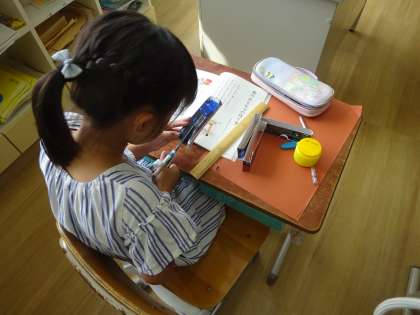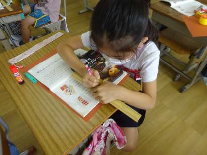 国語科「馬のおもちゃを作ろう」で、教科書の説明を頼りに、馬のおもちゃを作りに挑戦しました。「教科書を読んで、自分の力で馬のおもちゃを作ろう。」「先生や友だちに助けてもらってはいけないよ。」「上手にできるかな。」など、はじめは不安な様子でしたが、学習が進むにつれて、「教科書をよく読めば、ちゃんと作り方が書いてあるね。」「これなら自分でできるよ。」「上手にできてうれしいな。」など、自分たちの力で説明を読み、馬のおもちゃを作ることができました。