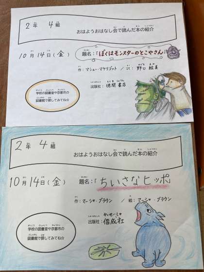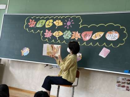 10月14日(金)の朝読書の時間におはようおはなし会が行われました。今月は、1・2年生の各学級でした。