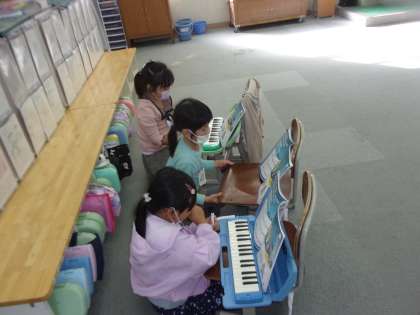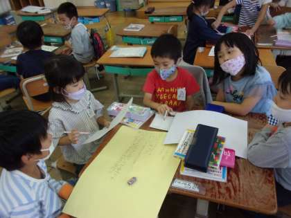係活動が始まりました。「あそびがかり」「かざりがかり」「なぞなぞクイズがかり」「おんがくがかり」など、自分の得意なことや好きなことをいかして、頑張っています。クラスのみんなが楽しく笑顔になるような活動を話し合って考えたり、準備や練習をしたりしています。