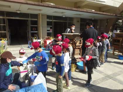 生活科「ぐんぐんそだて」の学習で育てているお米の、脱穀ともみすりをしました。みんなで手分けして、稲からお米の部分を取り出します。足踏み機を使っての作業と、手作業に分かれて行います。その後、唐箕(とうみ)という道具に入れて、お米を選別します。最後はもみすり機に入れます。もみすり機から白いお米が出てきたところを見て、「すごい!」と歓声が上がりました。「お米を食べられるようにするまで、大変だね。」「お米を大切に食べよう。」など、ふりかえりではたくさんの言葉を聞くことができました。