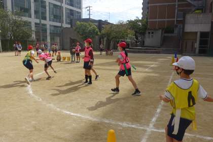 タグラグビーの授業の終わりにクラス対抗戦を行いました。