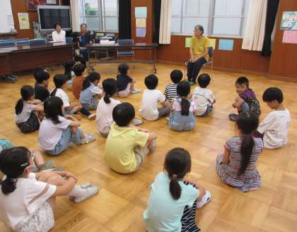 1.2組は7月3日(月)に、3.4組は7月7日(金)におはなしの森がありました。講師の先生をお招きして、読み聞かせをしていただきました。熱のこもった語りに、子どもたちも真剣に聞き入っていました。いろいろなお話の世界に浸ることのできた、特別な1時間でした。