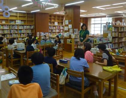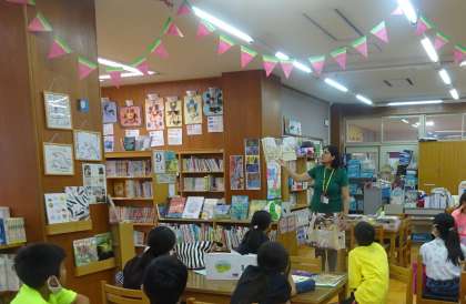 図書室で、学校司書の先生と一緒に学習をしました。学校司書の先生から、図書室の歴史についてのお話を聞き、図書室のきまりについて確認し、夏休みに読む本を選びました。最後は学校司書の先生による読み聞かせもしていただきました。短い時間でしたが、どの児童も本の世界を楽しむ姿が印象的でした。