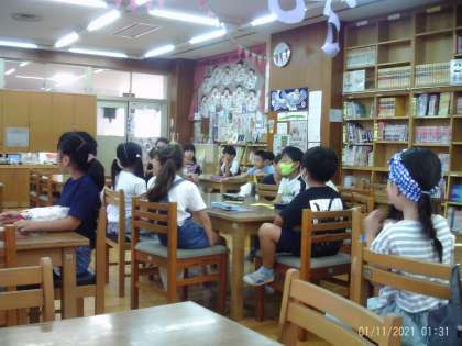 今日は、図書室でマリア先生から図書館の歴史のお話と読聞かせをしていただきました。夏休みに読みたい本を選ぶこともでき、もうすぐ始まる夏休みを楽しみにしているのが伝わってきました。